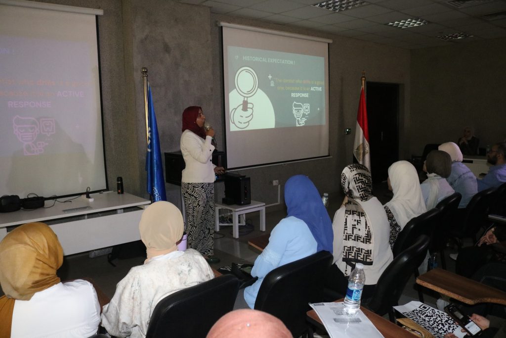 – “اتخاذ القرار في إدارة عملية التسوس: غير جراحي، دقيق، أم طفيف التوغل؟”، قدمتها الدكتورة سوزان صلاح الدين – مدرس بقسم العلاج التحفظي – كلية طب الأسنان جامعة بني سويف.